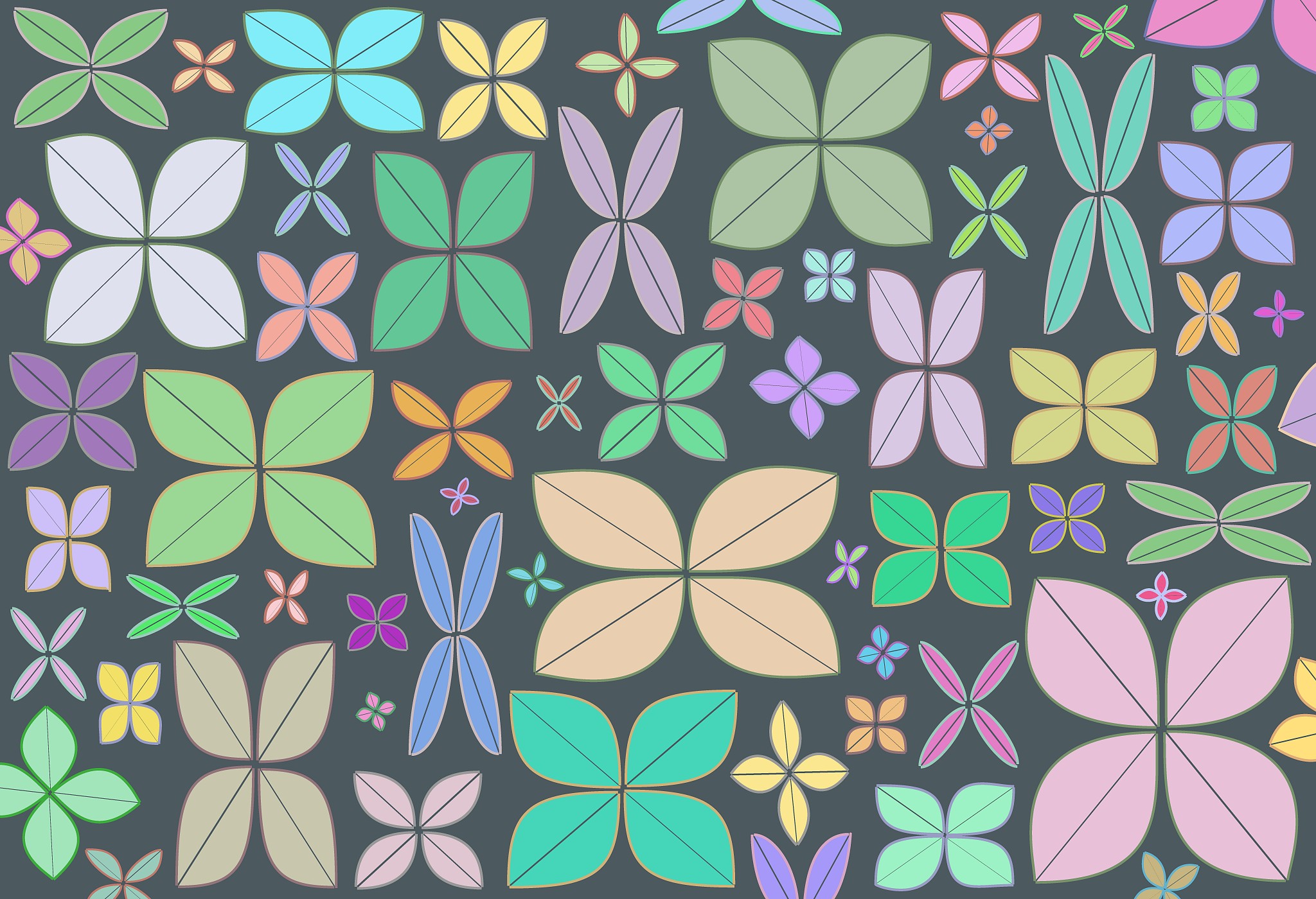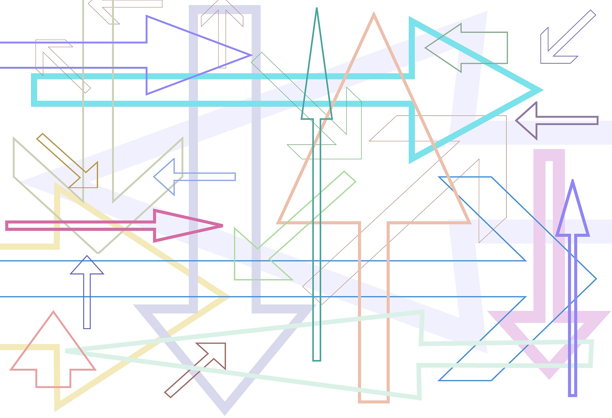 Series of colored lines and shapes in multiple configurations